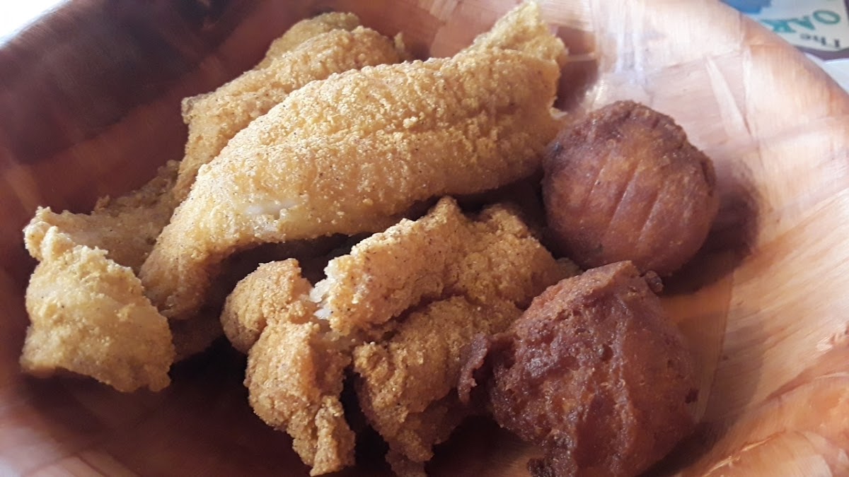 The grands enjoyed feeding the fish and turtles. The baked beans were amazing - and I typically do not like baked beans. The food is deep fried, but still good.